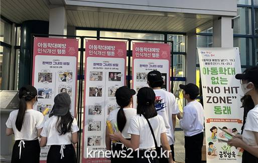 부산 동래구(구청장 장준용)는 지난 15일 동래문화회관 대극장 앞에서 2024년 아동학대 예방의 날(11월 19일)과 아동학대 예방주간(11월 19일~25일)을 맞이하여 아동학대 없는 "NO HIT ZONE 동래”홍보 캠페인을 개최했다고 밝혔다.
