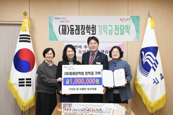 동래구장학회 관계자는 "기탁해 주신 장학금은 성적과 재능이 우수하면서 어려운 경제 여건에 있는 학생들을 위해 소중히 사용하겠다”며“장학회 역시 다양한 장학사업으로 인재 양성에 힘쓰겠다”고 밝혔다.