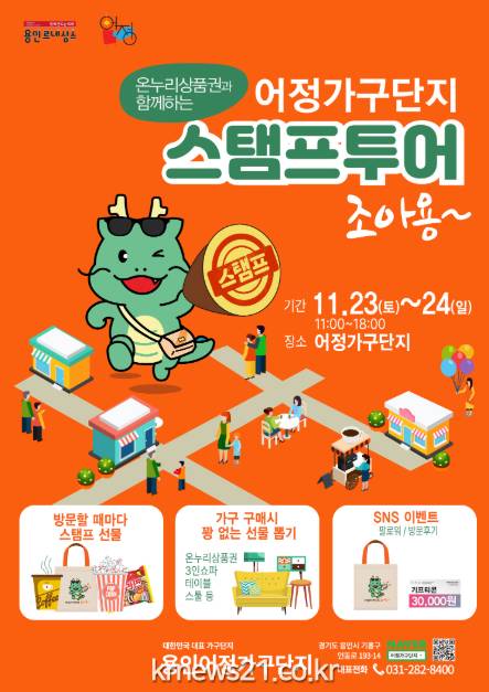 용인특례시(시장 이상일)는 상점가로 지정된 기흥구 어정가구단지(기흥구 언동로 193-14)에서 23~24일 이틀간 ‘스탬프 투어 조아용’ 이벤트를 연다고 22일 밝혔다.