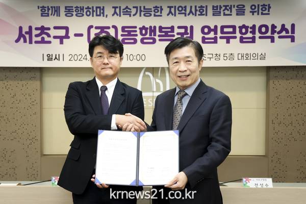 서울 서초구(구청장 전성수)가 21일 동행복권과 ‘동행하며, 지역사회 상생‧발전을 위한 업무협약’을 체결했다고 밝혔다.