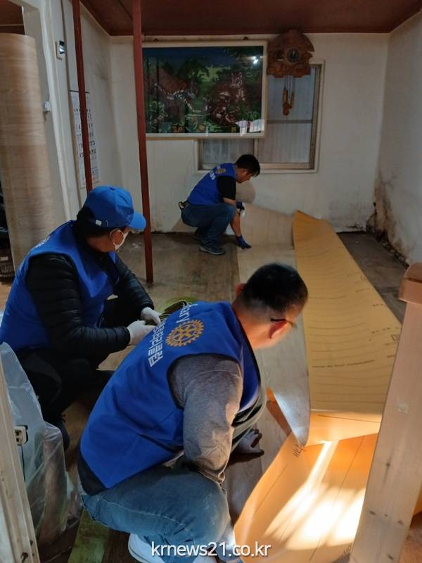 이날 로타리클럽 회원 30여 명은 경제적 어려움으로 오랫동안 집수리를 못해 열악한 환경에 노출되어 있는 저소득 가구를 찾아 노후된 도배와 장판을 교체하는 등 주거환경을 쾌적하게 개선하고 연탄 나눔 봉사활동도 함께 실시했다.
