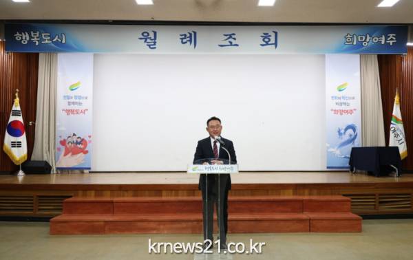 여주시(시장 이충우)는 12월 2일 9시부터 시청 대회의실에서 150여 명의 공직자가 참석한 가운데 12월 월례조회를 개최하였다.