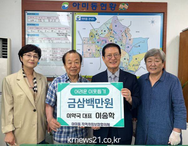 서구 이약국(대표 이송학)은 지난 7월 19일, 아미동 주민센터(동장 유민영)에 어려운 이웃돕기 기부금 300만 원을 전달하였다.