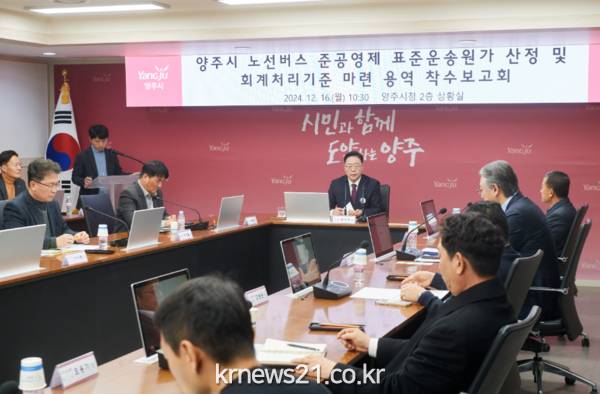 ▲ 사진=양주시양주시(시장 강수현)가 16일 오전 시청 상황실에서 ‘노선버스 준공영제 표준운송원가 산정 및 회계 처리 기준 마련 용역 착수보고회’를 개최했다고 밝혔다.