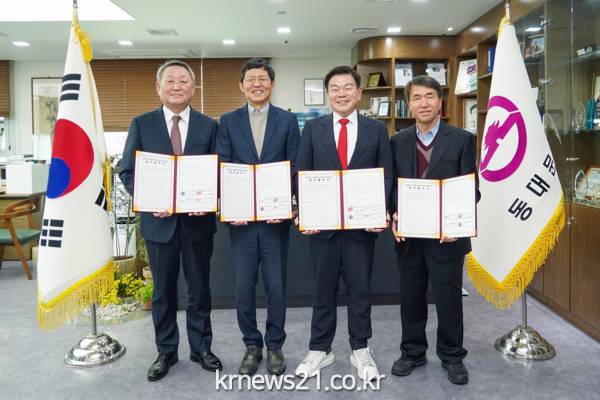▲ 사진=동대문구서울 동대문구(구청장 이필형)는 29일 서울동부교육지원청(교육장 홍석주), 한국외국어대학교(총장 박정운), 고려대학교 보건과학연구소(연구소장 김성욱)와 ‘2025년 고교학점제 기반 구축’을 위한 4자 업무협약을 체결했다고 밝혔다.