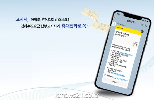 ▲ 사진=담양군청담양군 물순환사업소는 정보통신기술(ICT) 기반 전자수도 요금 고지서 서비스인 ‘과세 알림톡 서비스’를 확대 운영한다.