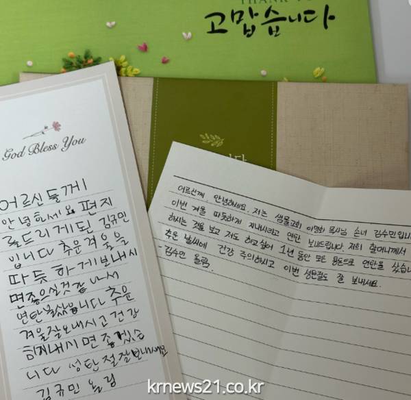 김수민‧김규민 남매가 기탁한 성금 60만원은 이들이 1년 동안 용돈을 열심히 모아 마련한 것이라고 한다. 함께 전달받은 손편지에는 “할머니께서 평소 어려운 이웃에게 선행을 실천하시는 것을 보고 따라하고 싶은 마음에 이번 기탁을 하게 됐다”는 내용이 담겨있다.
