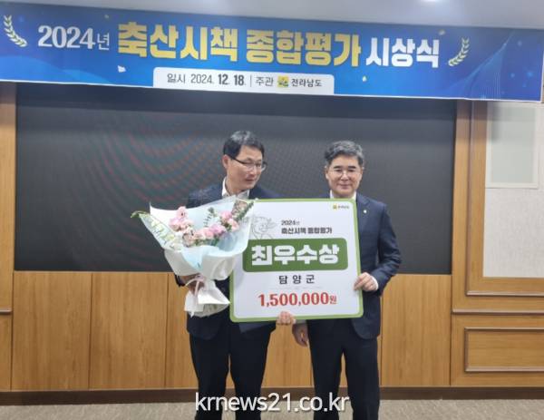 ▲ 사진=담양군청담양군이 지난 18일 전라남도에서 주관하는 2024년 축산시책 종합평가에서 지난해 우수상에 이어 최우수상을 받았다.