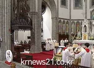 ▲ 사진=KBS NEWS 영상 캡처먼저 천주교 서울대교구는 오늘 새벽 서울 중구 명동대성당에서 정순택 대주교 주례로 '주님 성탄 대축일 밤 미사'를 봉헌했다.