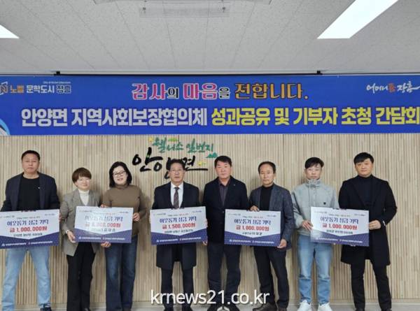 백수영 안양면장은 “안양면 단체 및 개인들의 따뜻한 마음이 모여 어려운 이웃들에게 큰 힘이 되고 있다”며 “기탁된 성금은 지역의 어려운 이웃을 위해 소중하게 사용될 것”이라고 전했다.