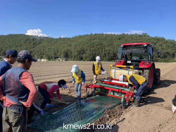 ▲ 사진=고흥군청고흥군(군수 공영민)은 지난 10일 풍양농협 주관으로 농림축산식품부 주산지 일관 기계화 사업으로 임대한 마늘 파종기 및 비닐피복기 등 마늘 기계화 연시회를 개최했다.