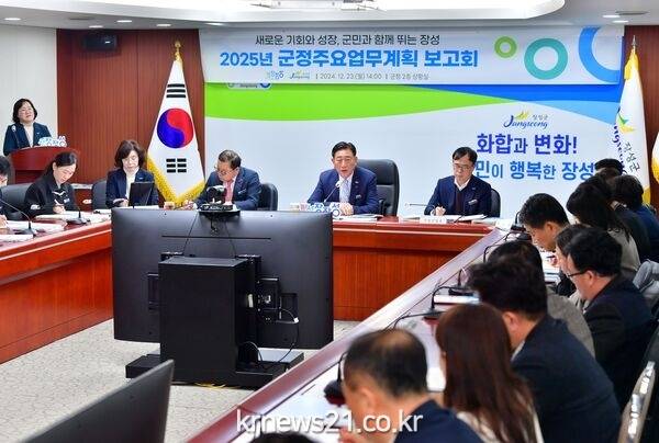 ▲ 사진=장성군장성군이 23일 ‘2025년 군정주요업무계획 보고회’를 갖고, 내년도 주요사업에 관한 부서별 보고와 토론을 진행했다.