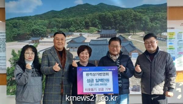 이번 기부금은 ‘광적상가번영회’가 경기 불황 등 어려운 여건 속에서도 이웃과 함께 온정을 나누기 위해 회원들과 십시일반 모아 마련한 것으로 그 의미가 깊다.
