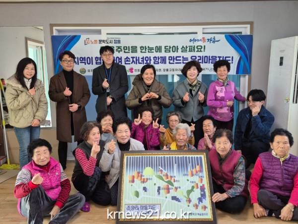 안경아 유치면장 “손자녀와 함께 마을의 모습과 사람사는 모습을 지도에 담았다. 어르신들의 이름이 기재된 지도를 회관에 부착하여 이웃에 대한 관심을 유도하고 주민이 안부를 살피는 마을복지 추진 기회를 삼았다”고 말했다.