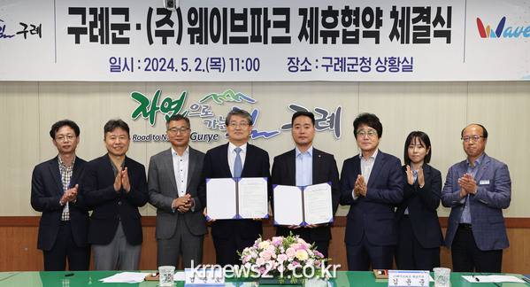 구례군은 5월 2일 군청 상황실에서 ㈜웨이브파크와 상호협력을 위한 제휴 협약을 체결했다.