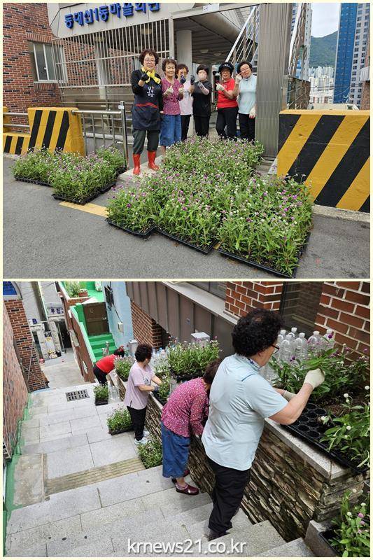 서구 동대신1동 마을회관(대표 김영권)에서는 6월 26일 마을회관 일원에 천일홍 500본을 심었다.