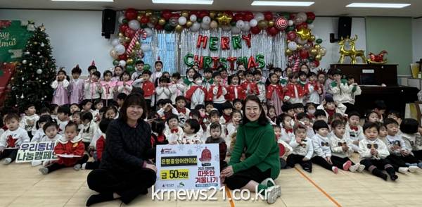 유경숙 응암1동장은 “아이들이 따뜻한 마음을 나눠줘 감사하다”며 “원장님과 교직원들, 그리고 아이들의 나눔은 추위를 녹이는 큰 힘이 된다”고 밝혔다.