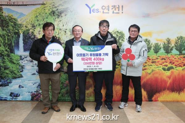 ▲ 사진=연천군청연천군 유해동식물 구제단(단장 왕영남)은 8일 민족 대명절 설을 앞두고 연천군청을 방문해 떡국떡 400kg을 기탁하며 이웃사랑을 실천했다.