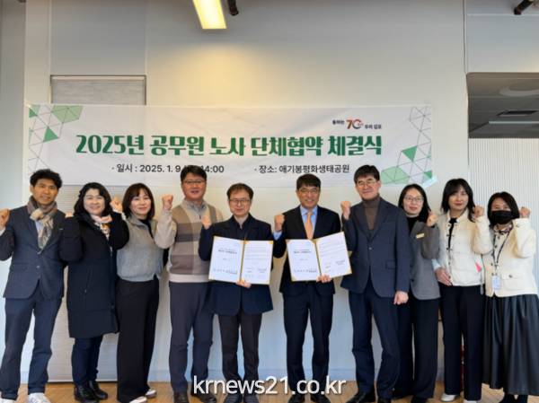 김포시(시장 김병수)는 김포시청 공무원 노동조합(위원장 유세연)과 1월 9일 애기봉평화생태공원에서 새로운 단체협약을 체결했다고 발표했다.