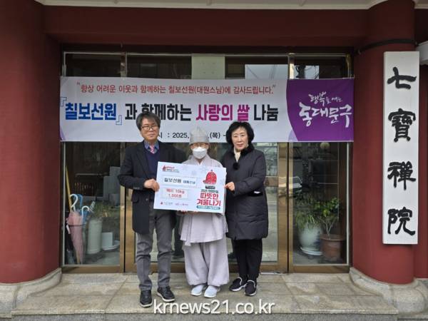 정일영 답십리2동장은 “소외된 이웃을 위해 기부와 봉사를 이어가는 칠보선원 및 관계자분들에게 감사드린다”며 “앞으로도 지역사회의 취약계층을 위한 나눔과 지속적인 관심을 부탁드린다”고 말했다.