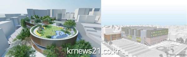 기존 노후화된 공원과 주차장을 하나로 합쳐 상부에는 더 넓어진 어린이공원과 전망대를 조성하고, 하부에는 지하 2개 층의 공영주차장 50면을 조성한다.