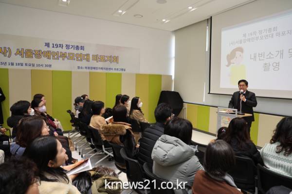 이날 박강수 마포구청장은 정기총회 시작에 앞서 “장애인의 더 나은 삶을 위해 애써주시는 서울장애인부모연대 마포지회에 진심으로 감사드린다”라고 말했다.