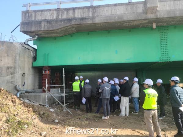▲ 사진=구례군청구례군은 12월 8일 시설 직렬(토목) 공무원들이 특수 공법으로 공사가 진행 중인 국도 17호선 서시1교 승상 공사 현장을 견학했다고 밝혔다.