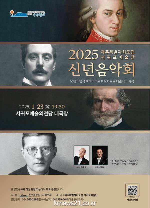 새해를 맞이하는 서귀포 시민들에게 기운찬 음악을 통해 새 시작을 응원하는 취지에서 진행되는 이번 신년음악회는 모차르트, 베르디, 푸치니, 쇼스타코비치의 명곡들을 공연한다.
