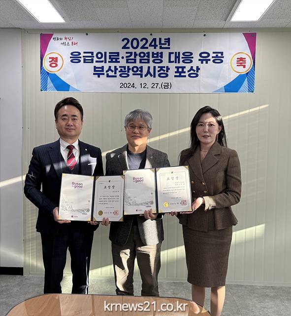 또한, 지난 27일에는 응급 의료시책 분야 유공으로 지역응급의료센터‘대동병원’(명륜동 소재)과 감염병 예방과 대응 분야 유공으로‘금강요양병원(온천동 소재) 노인숙 원장’에게 부산광역시장 표창을 전수했다.