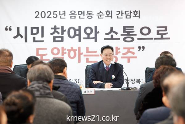 ▲ 사진=양주시강수현 양주시장이 3일 오후 관내 회천3동에서 열린 올해 첫 읍·면·동 간담회에 참석해 시민들의 목소리의 귀 기울이며 본격적인 민생 행보의 시작을 알렸다.