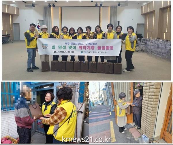 부산광역시 서구 여성친화도시 구민참여단(회장 김경복)은 지난 21일 설 명절을 맞이하여 관내 생활에 어려움을 겪고 있는 독거노인 등 취약계층을 방문하여 성품 전달 및 안부 확인 등 돌봄 활동을 실시하였다.