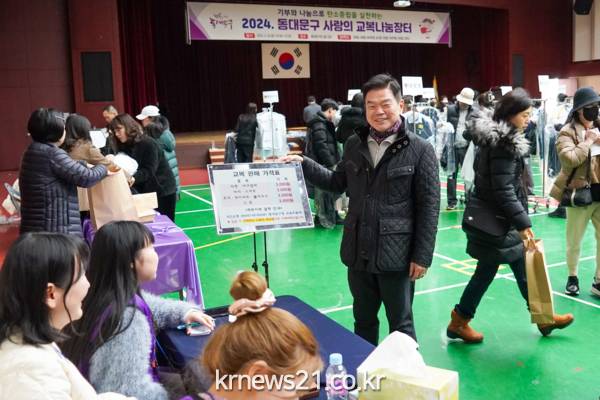 ‘사랑의 교복나눔장터’는 2013년부터 구가 운영해 온 행사로, 사용하지 않는 교복을 기부받아 재사용함으로써 탄소중립을 실천하고, 착한 소비 문화를 확산하는 데 기여하고 있다. 판매 수익금은 장학기금으로 기탁돼 소외계층 학생들을 위한 장학금으로 사용된다.