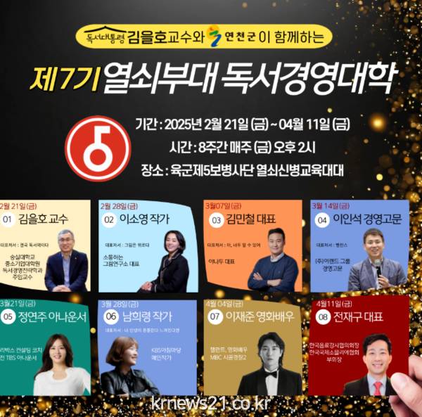 ▲ 사진=연천군청연천군은 2월 21일부터 4월 11일까지 8주간 매주 금요일 오후 2시 육군 제5보병사단 열쇠신병교육대대에서 ‘제7기 열쇠부대 독서경영대학’를 운영한다고 밝혔다.