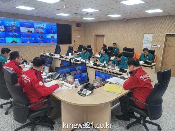 ▲ 사진=강원특별자치도□ 강원특별자치도 산불방지대책본부(본부장 김진태)는 기후 변화의 영향으로 산불이 연중화·대형화되고, 동시에 다발적으로 발생하는 산불에 적극 대응하기 위해 2월 24일 오후 5시 강원특별자치도청 신관 3층 재난상황실에서 행정부지사 주재로 긴급회의를 개최했다.