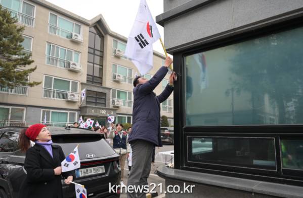 ▲ 사진=여주시여주시는 제106주년 3‧1절을 맞아 여주시 재향군인회(회장 이준호)와 함께 ‘국기사랑·나라사랑·여주사랑 태극기 달기 운동’을 전개했다. 이번 행사는 3월 1일 오전 10시 중앙파크타운(천송동 597)에서 진행됐으며, 재향군인회 회원과 입주민 등 50여 명이 참석했다.