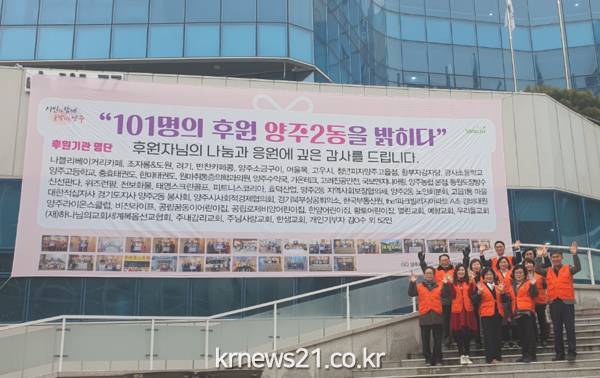 이번 현수막은 지난해부터 올해 1월까지 자발적으로 선뜻 나눔을 실천해 준 양주2동 지역사회보장협의체를 포함한 101명에 후원자들을 기리기 위해 마련됐다.