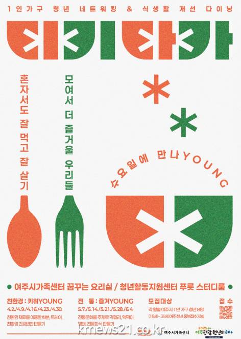 여주시 최초로 1인가구 청년 지원사업의 시작을 알린「티키타카 : 수요일에 만나영(YOUNG)」은 교류를 원하는 1인가구 청년을 위해 여주시가족센터와 협력하여 진행하는 프로그램으로 △4월 ‘친환경 : 키워영(young)’(우드 업사이클링과 친환경 신소재를 이용한 화분제작 및 건강반찬 만들기), △5월 ‘전통 : 즐겨영(young)’(전통주 및 전통소품 제작과 전통 한식 요리클래스)’을 주제로 하는 다채로운 컨텐츠로 청년들에게 다가갈 예정이다.