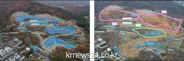 시는 지난 2월 수지구 고기동 산 20-12번지 일원 사회복지시설(노인복지주택) 조성 현장의 사면 안정화를 통한 사고 예방 목적으로 토사 반출을 한시적으로 허용했다.