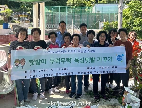서구 서대신1동 산복계단길 나눔공동체(회장 이복례)는 지난 14일 '2024년 행복 더하기 주민 공모사업(무럭무럭 고분도리)'으로 옥상 텃밭 가꾸기 수업을 진행하였다.