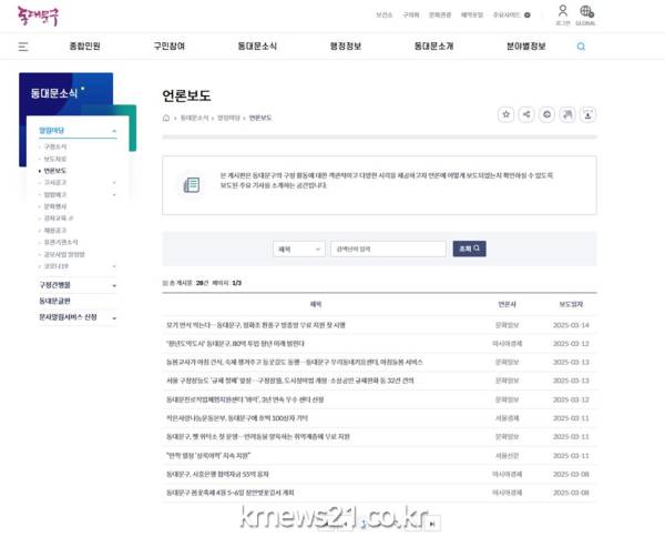 ▲ 사진=동대문구서울 동대문구(구청장 이필형, 이하 ‘구’)는 보다 효과적인 언론홍보가 이뤄질 수 있도록 구 누리집 알림마당 코너를 일부 개편했다고 14일 밝혔다.