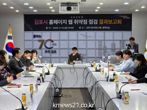▲ 사진=김포시김포시(시장 김병수)는 3월 14일(금)에 본관 2층 중회의실에서 '웹 취약점 점검 결과보고회'를 개최했다. 이번 보고회는 시 홈페이지의 보안 취약점을 점검하고, 해킹 등 사이버 위협에 대한 대응 방안을 논의하기 위해 마련됐다.