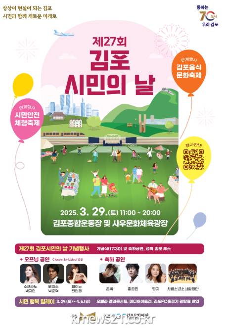 ▲ 사진=김포시김포시가 제27회 김포시민의 날을 맞아 오는 3월 29일 김포종합운동장과 사우문화체육광장에서 기념행사를 개최한다. ‘시민이 주인공인 시민의 날’을 강조한 김병수 시장의 방향성에 맞춰 이번 행사는 의례적인 행사에서 벗어나, 주인공인 시민이 오전 11시부터 저녁 8시까지 하루종일 즐기고 소통하고 특별한 경험을 할 수 있는 축제의 장으로 마련됐다.