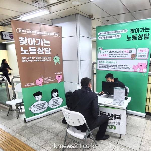 ▲ 사진=은평구청은평구(구청장 김미경)는 지역주민의 노동 복지서비스 향상을 위해 퇴근 시간 연신내역에서 ‘찾아가는 지하철 노동 상담’을 운영한다고 밝혔다.