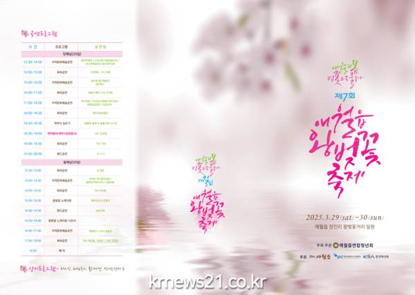 김태헌 애월읍장은 “애월의 아름다운 벚꽃과 함께하는 특별한 순간을 선사하기 위해 다양한 문화 공연과 체험 프로그램을 준비했다”며, “가족, 친구, 연인과 함께 축제장에 방문해 잊지 못할 봄날의 추억을 만들어 가시길 바란다”고 전했다.