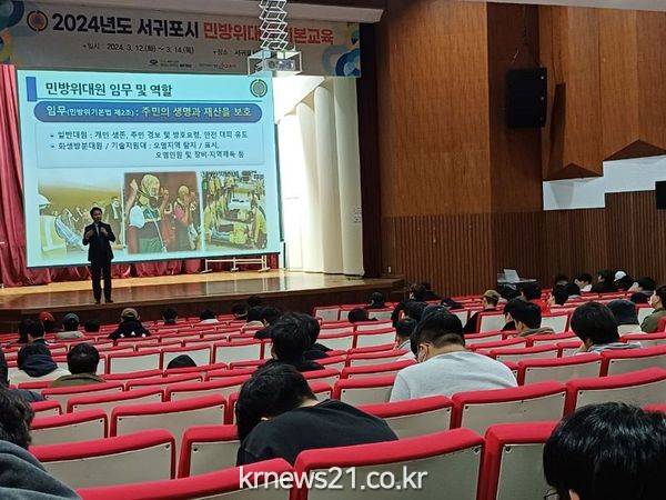 서귀포시는 4. 8(화)부터 4. 10(목)까지 사흘간 서귀포 민방위 대원들을 대상으로 서귀포시 청소년수련관에서 민방위 기본교육을 실시한다고 밝혔다.