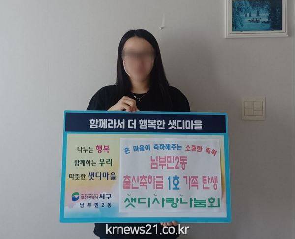남부민2동 샛디사랑나눔회(회장 배찬식)에서 2025년부터 남부민2동에 출생신고를 하는 출생아 가정에 온누리상품권 5만 원을 지원하기로 한 이후, 1호 가족이 탄생하였다.