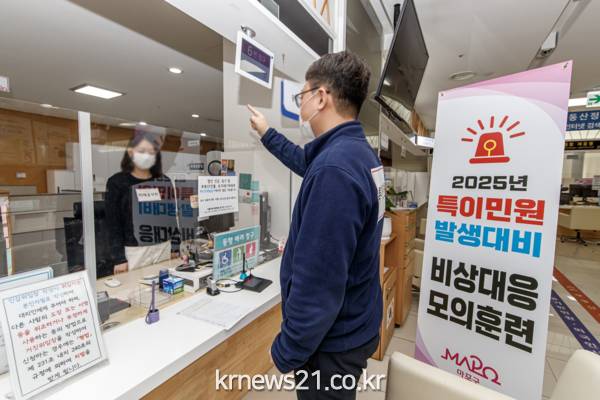 한편, 마포구는 모두가 안전한 민원 환경을 구축하기 위해 구청 종합민원실과 16개 동 민원실을 대상으로 비상대응반을 운영하고 특이민원 발생에 대비한 모의훈련을 반기별로 실시하고 있다.