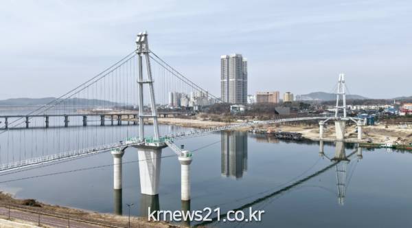 ▲ 사진=여주시여주시(시장 이충우)는 지난 3월 31일 신륵지구 관광지와 금은모래지구 관광지를 연결하는 출렁다리를 준공했다고 밝혔다.