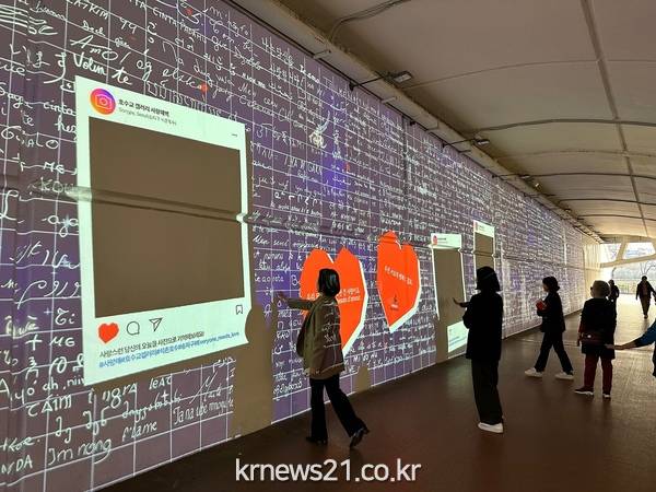특히, 프랑스 ‘사랑해 벽(Wall of Love)’ 작가와 협업한 ‘사랑해 호수교’가 호수의 낭만을 더한다. 인류 보편적인 사랑의 감정을 3백 가지 언어의 손글씨로 표현했다. 관객 움직임을 감지하는 반응형 작품으로, 한번 터치 시 다양한 사랑의 메시지가 떠오르고 두 번 터치하면 SNS 프레임을 배경으로 마치 파리에 온 듯한 기념사진도 남길 수 있어 재미를 준다.