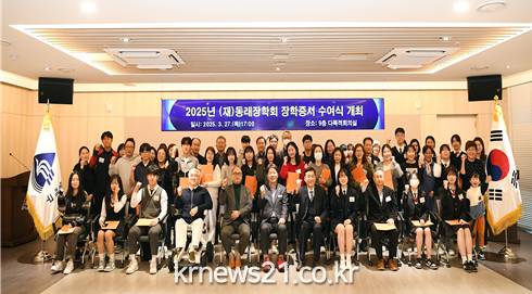 ▲  사진=부산동래구부산 동래구(구청장 장준용)은 지난 27일 동래구청 다목적실에서 (재)동래장학회(조홍래 이사장) 장학생 및 학부모 장학회 이사 등 관계자 70여 명이 참석한 가운데「제15회 (재)동래장학회 장학증서 수여식」을 개최했다고 밝혔다.